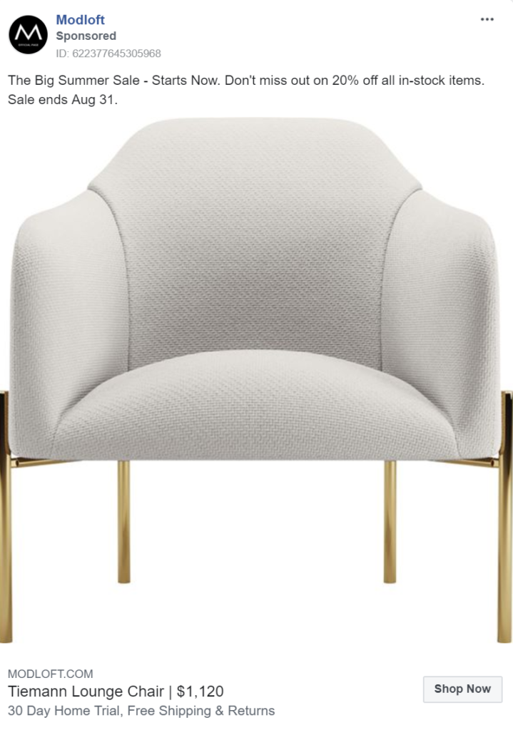 Many luxury furniture brands feel that price is only a small deciding factor for those purchasing their products. As a result, few add classic sales techniques, such as discounts and sales, to their marketing strategies. In reality, almost everyone is swayed by a bargain, no matter their wealth. Simple sales, value addons (like free room planning) and time-sensitive offers (like those in Modloft’s ads) can go a long way in compelling customers to complete a sale.