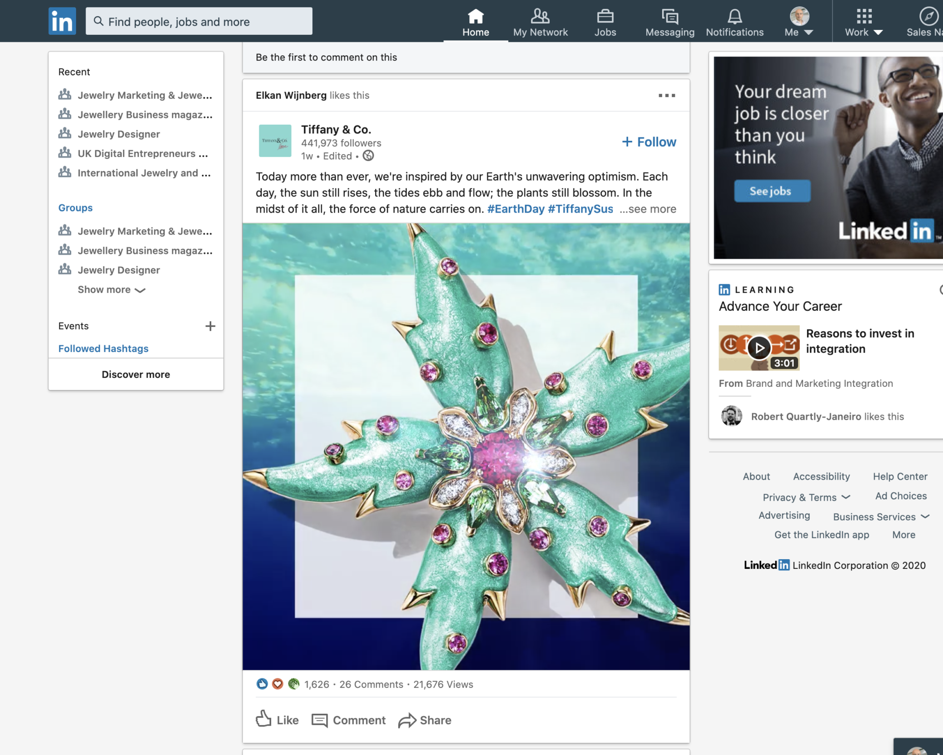 Above is an example of the most popular Tiffany posts on Linkedin. It’s a good example that shows and empowers the product.